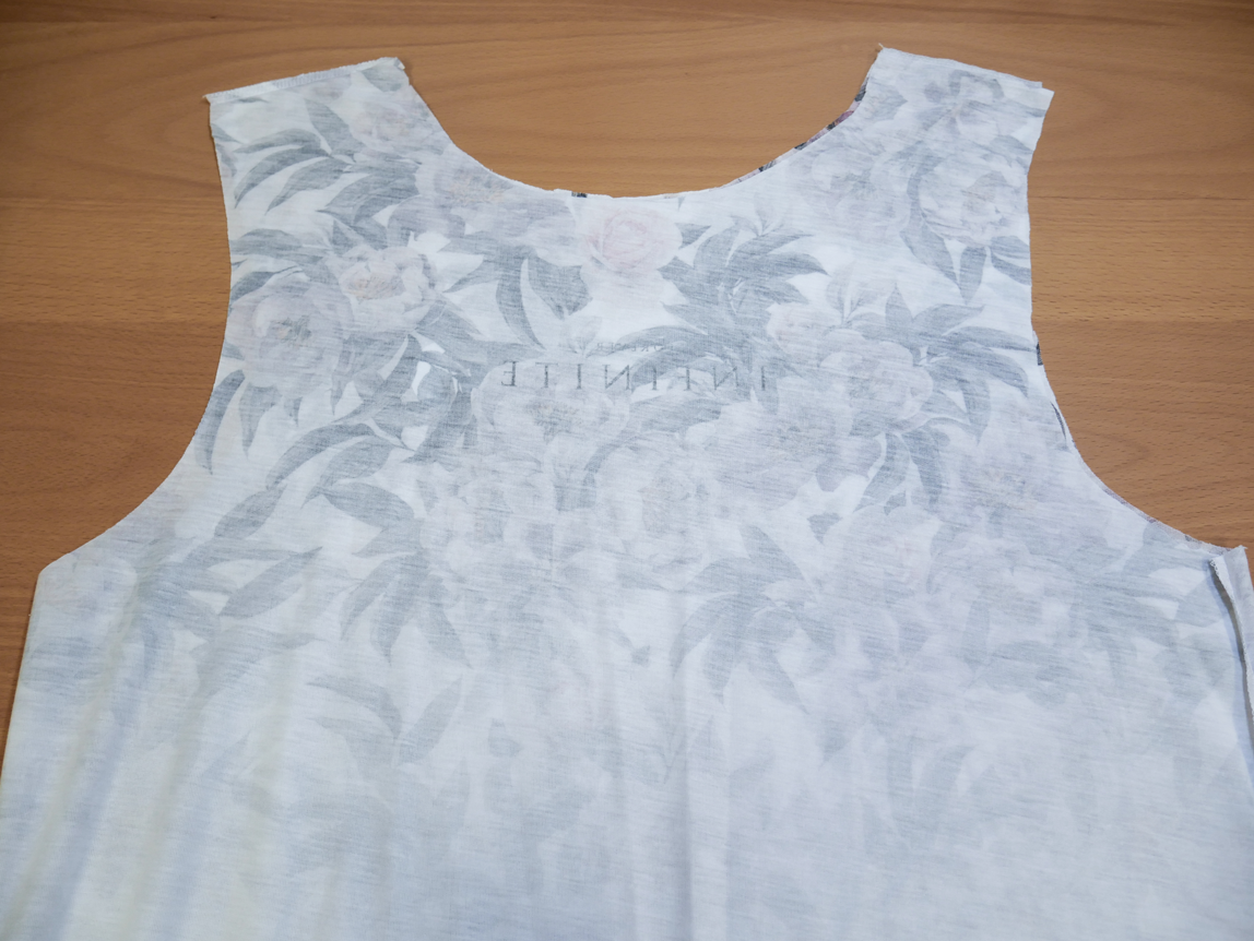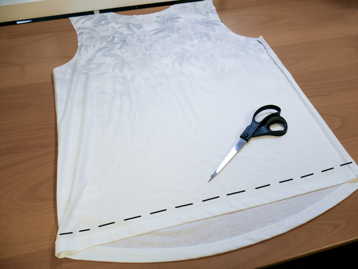 Hinweis: Wenn Du ein Top verwendest, kannst Du Dir das Abscheiden der Ärmel natürlich sparen. Es sei denn du möchtest längere Henkel haben.