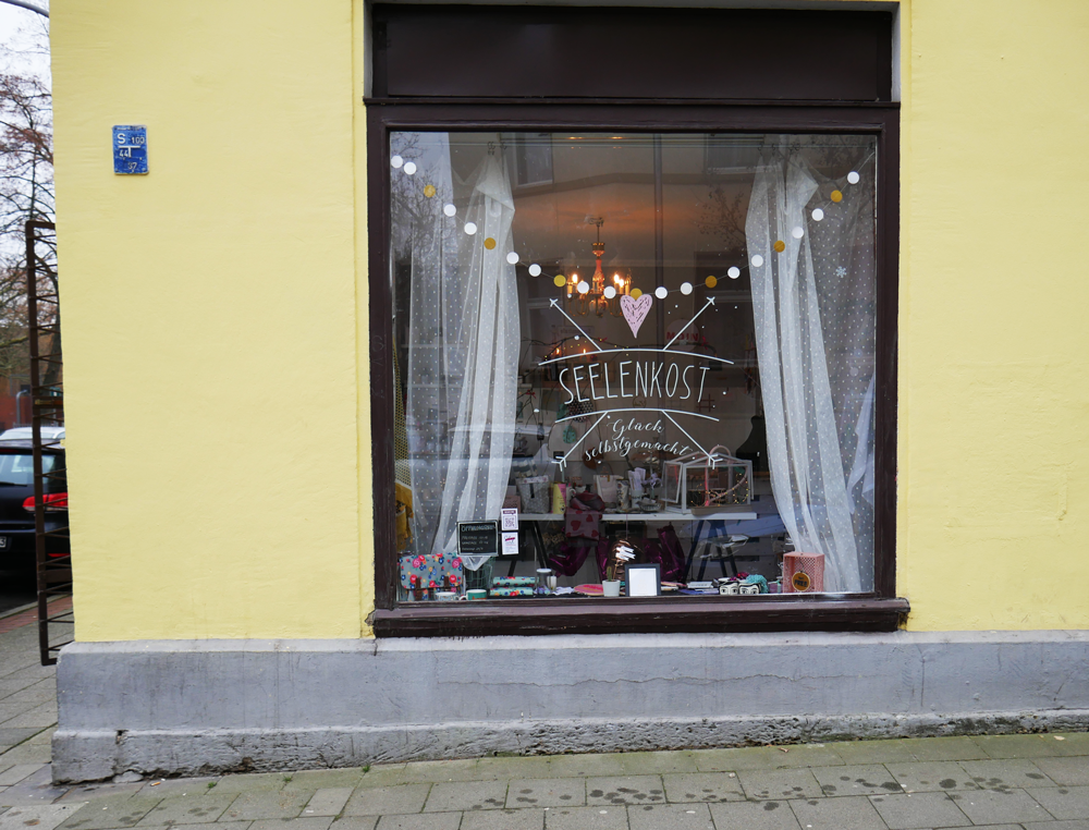 Das Lädchen an der Ecke zur Sophienstraße hat Dominika mit viel Liebe zum Detail eingerichtet. Die von ihr sorgfältig ausgewählten Produkte haben einen dekorativen Platz gefunden und schaffen damit eine Atmosphäre, die zum Entdecken einlädt. Dabei ist es ihr wichtig, auch Waren regionaler Designer/Künstler wie zum Beispiel Lovely Sloth anzubieten. Neben handgemachten Produkten und Artikel kleinerer Labels wird bei Seelenkost auch auf nachhaltige Produkte Wert gelegt.