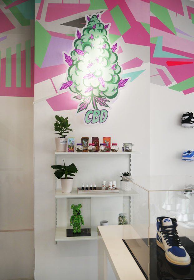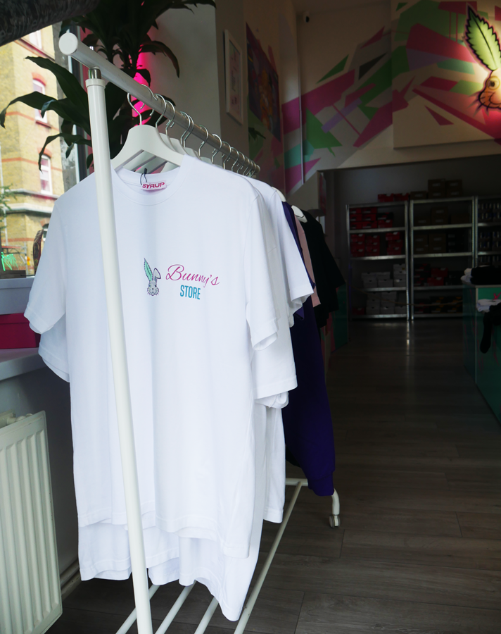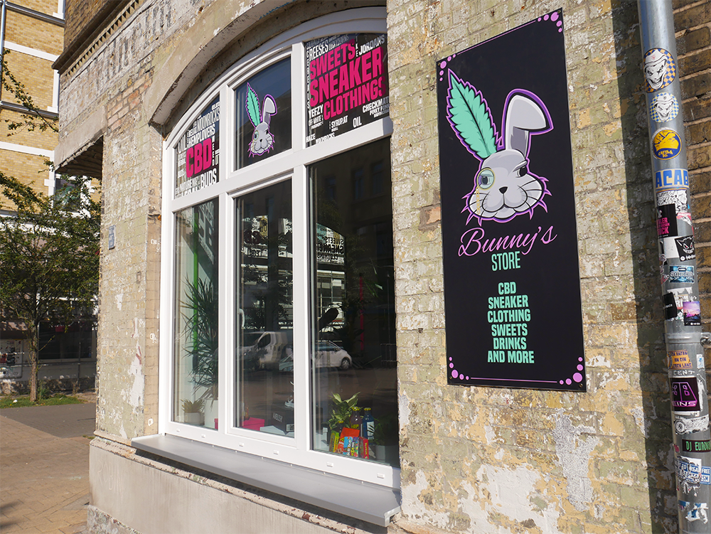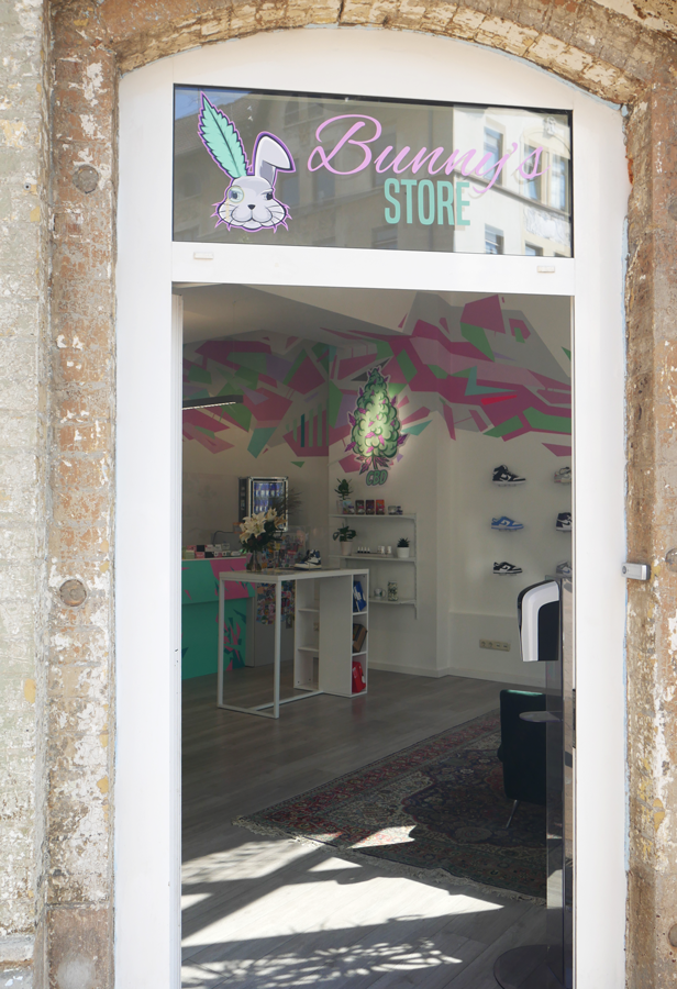 Der Bunny’s Store ist ein Concept Store der eigene CBD-Produkte, exklusive Sneaker, importierte Süßigkeiten und Getränke sowie passende Klamotten in einem Geschäft zusammenbringt.