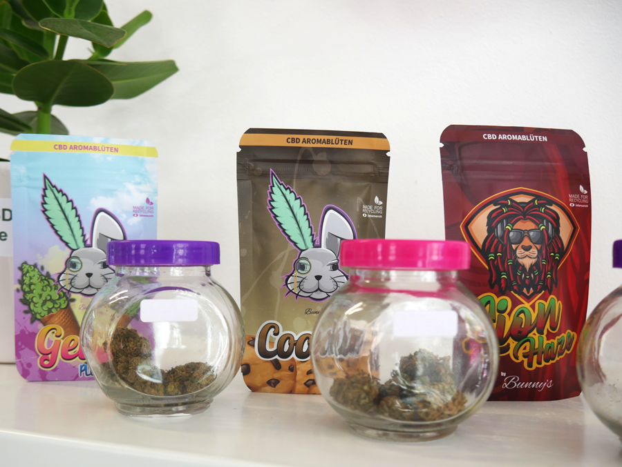 Bestückt mit dem eigenen Label und Design bietet der Bunny’s Store CBD-Aromablüten bisher in den Sorten LionHaze, Gelato Plus, Cookies und KiwiKush an. Auch CBD Öl im passenden Design von 5 %, 10 %, 20 %, und 30 % sind im Laden erhältlich. Die CBD-Aromablüten können vorab durch Proben in Gläsern einen Geruchstest unterzogen werden.