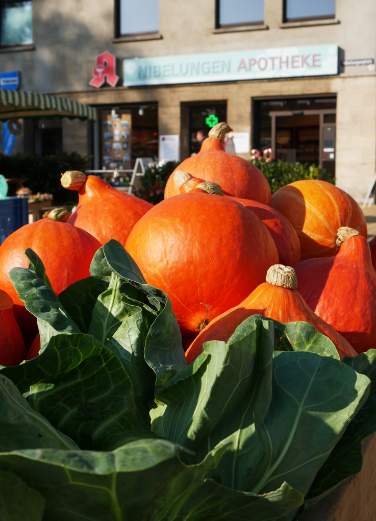 Im Siegfriedviertel am Nibelungenplatz findet jeden Dienstag und Freitag ein Wochenmarkt statt. Für Liebhaber:innen der regionalen Produkte stehen Gemüse, Fleisch, Obst, Fisch und Käse zum Verkauf bereit. Auch saisonale Produkte, Blumen und Kleidung werden von den Verkäufer:innen angeboten.