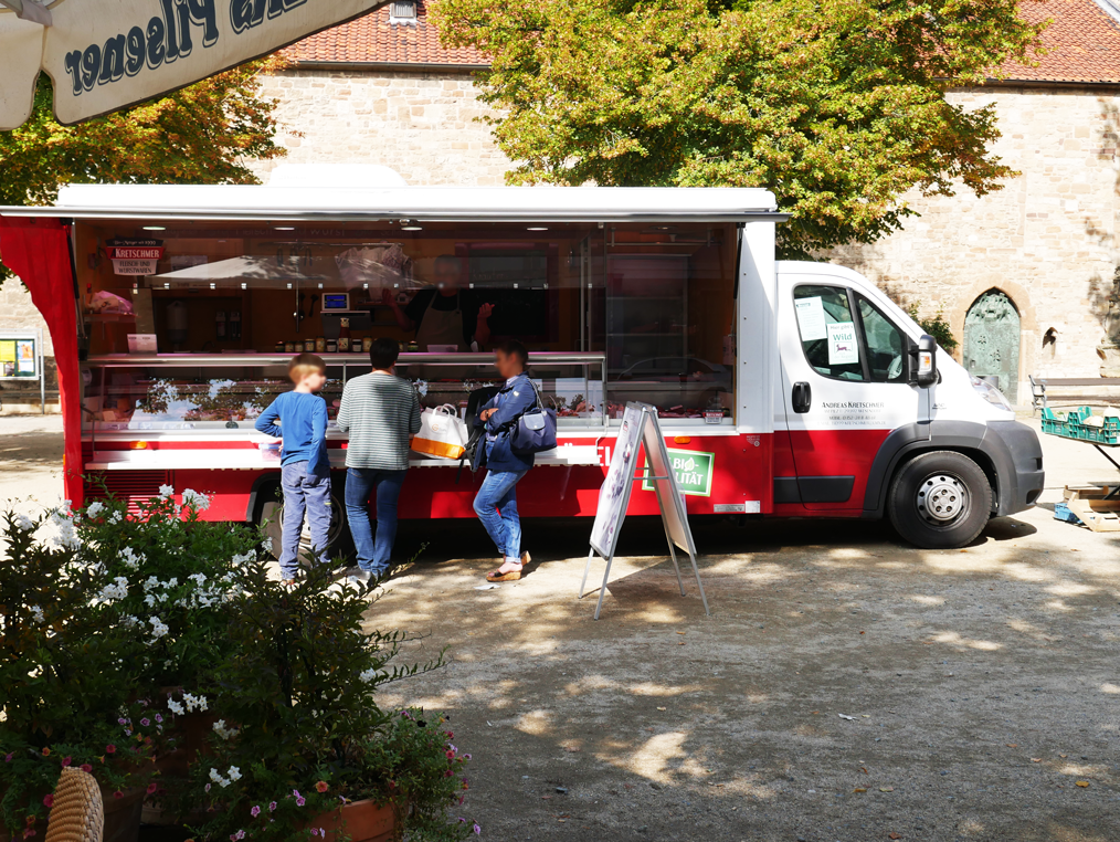Je nach Jahreszeit verkaufen 12 – 18 Händler:innen jeden Samstag von 8 bis 13 Uhr ihre Waren auf dem Stockheiser Markt. Zum Angebot gehören Obst, Gemüse, Fleisch, Eier, Italienische Feinkost, Textilien und Blumen. Der Bio-Vollkornbäcker erglänz das vielfältige Marktangebot.