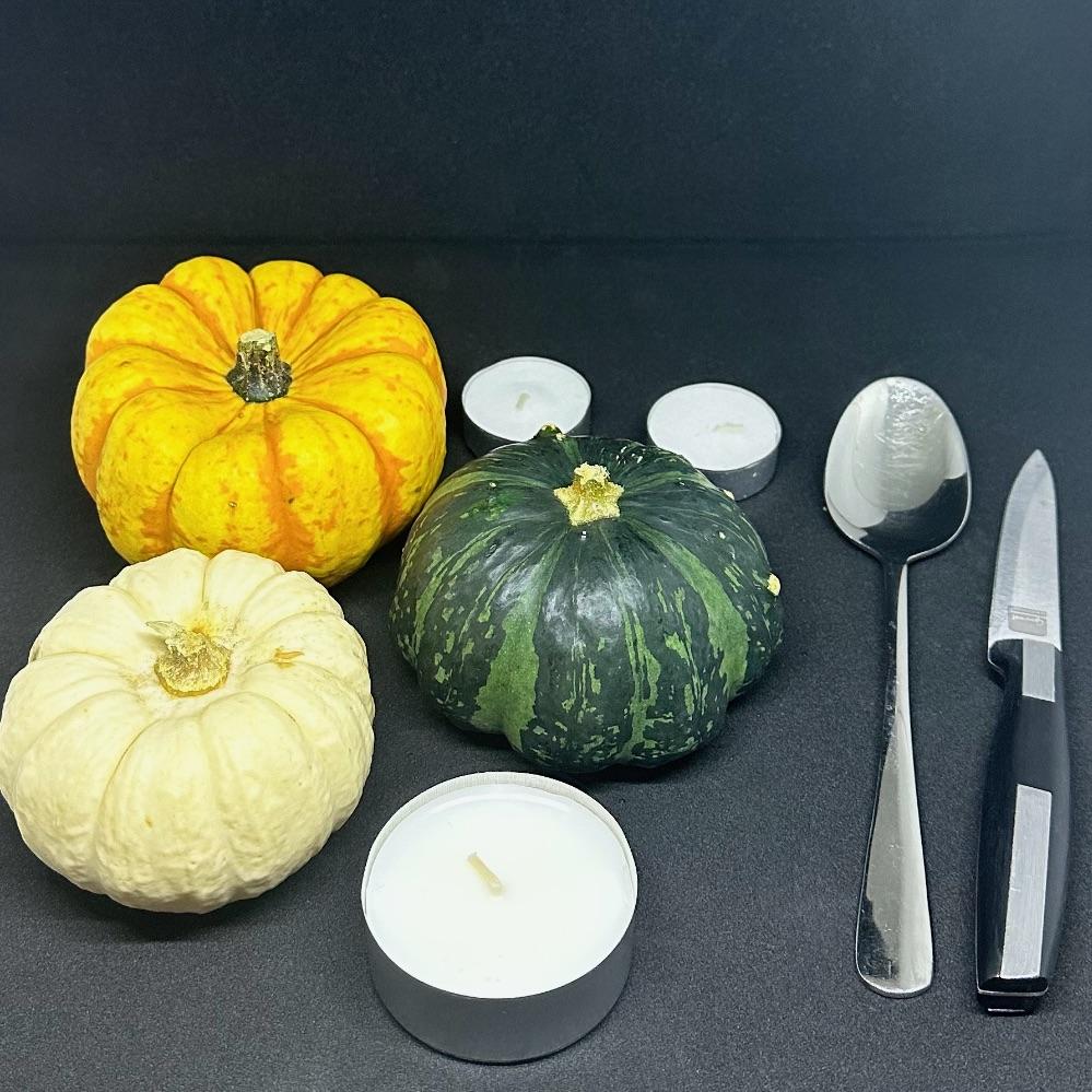 - Teelichter eventuell in verschiedenen Größen (je nach dem wie groß deine Kürbisse sind)