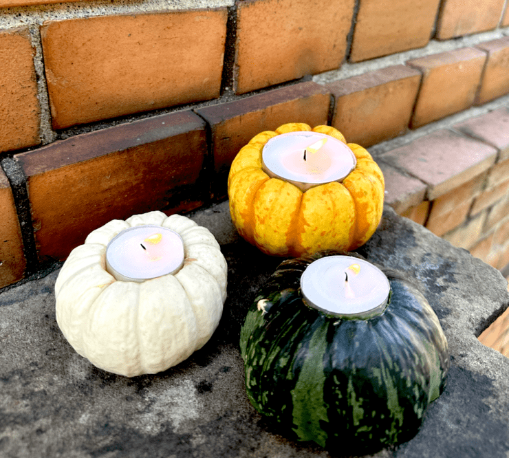 - Letzter Schritt: Die Teelichter einsetzen und anzünden. Nun kannst du das wunderschön herbstliche Ambiente genießen.